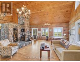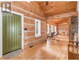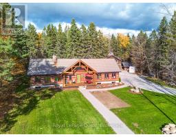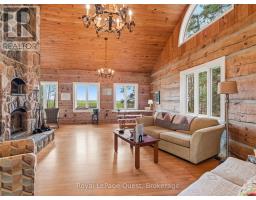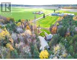 Custom home on 50.6 acres +/- with stunning views of Georgian Bay, farm land, and Blue Mountain seen from the living room, primary bedroom, and covered porch. The home offers privacy from the road, the convenience of a wrap-around driveway, and finished garage/shop.10 minute drive to all major shopping in the area and a three minute drive to the sandy beach at the bottom of Con 14 W. Note: The treed acreage is part of the Ontario managed forest tax incentive program. Also, one of the bedrooms was converted into a large walk-in closet for the primary, which can be changed back if the buyer wishes. The exterior of the home was just refinished (including new chinking) by an expert log home builder. Landscaping was also done this year and the view across the bay has been opened up. Come see this beauty! (id:50886)
