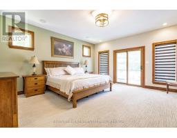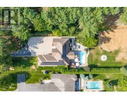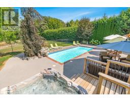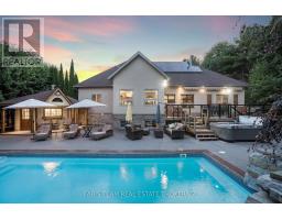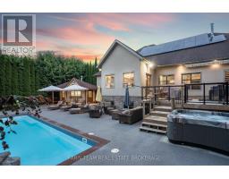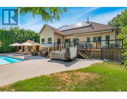 Top 5 Reasons You Will Love This Home: 1) Set on a stunning one-acre lot in a prestigious countryside enclave, this executive bungalow offers privacy, luxury, and a peaceful ravine backdrop with forever greenspace, your own quiet retreat complete with a saltwater pool 2) Step inside to discover refined finishes and thoughtful upgrades throughout, including vaulted ceilings, oak hardwood floors, high-end stone countertops, custom California shutters, built-in closet organizers, and dual sinks in the spa-like ensuite, with additional features such as owned solar panels, a built-in safe in the furnace room, a central vacuum system, auto-flush bidet toilet, and a full water softening and filtration system 3) Appreciate the ease of bungalow living with everything you need on one level, while the finished basement adds even more space to entertain, featuring a full games room, private theatre room, and direct access to the garage 4) Outdoors, the beautifully landscaped grounds include an irrigation system, upgraded decking, a new pool pump with robo-cleaner, smart exterior lighting, and additional highlights such as a newer heat pump and furnace (2021), new windows and garage door (2021), and front and rear security cameras 5) This turn-key, resort-style property presents comfort, technology, and luxury, offering a truly exceptional lifestyle inside and out. 2,334 above grade sq.ft. plus a finished basement. (id:50886)