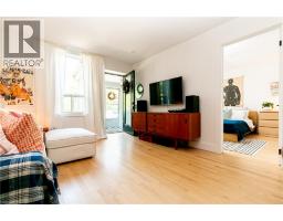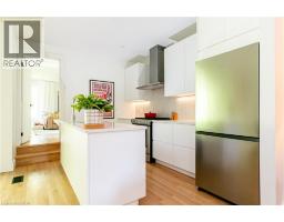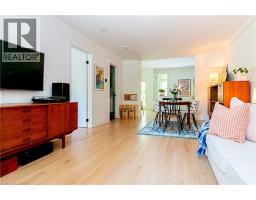 Charming, Light-Filled One-Floor Living at it's best 1,000 sq. ft. of beautifully renovated living space in this move-in ready, semi-detached century cottage. The open-concept layout features oak hardwood floors, recessed lighting, modern trim, and a fresh neutral palette. An oversized premium sliding door floods the space with natural light and opens to a spacious, private backyard. The contemporary kitchen is a standout, showcasing quartz countertops, handcrafted Zellige tile backsplash, under-cabinet lighting, stainless steel appliances, and a full pantry wall for extra storage. Enjoy two comfortable bedrooms, including a primary suite with generous closet space and a luxurious 4-piece bathroom complete with a soaker tub, updated tile, modern vanity, and unique stained glass detail. Additional highlights include a full basement with plenty of storage, laundry, and hobby space, off-street parking, a private patio, and a mature backyard with garden shed—perfect for relaxing or entertaining. Situated in Hamilton's sought after north end the location is perfect for those seeking an active lifestyle down by the Bay. Walk to GO and downtown shops and amenities with easy access to the highway. A super house to make home! (id:50886)