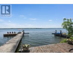 Stunning Riverfront Entertainer's Dream - Key Features - Bedrooms: 3 + potential 4th in lower level, Bathrooms: 2 full (one on each level) Size: Over 3,000 sq ft (including finished walk-out lower level) Garage: Detached 2-car, 24' x 32' with rear door onto water side. Dockage: 100 ft main dock + 30 ft extension east, 7,000 lb boat lift. Main Level Welcoming Foyer: Opens to a generous open-concept layout. Dining Room: Easily seats 8+ guests, ideal for formal dinners. Kitchen: Fully updated with granite countertops & island seating, built-in wine fridge & stainless-steel appliances included, and a breakfast bar for casual dining or conversational gathering. Living Room: Abundant natural light, refinished hardwood floors, and a wood-burning fireplace (convertible to gas) Patio doors to the deck overlooking the river. Sleeping Quarters - Primary Suite: Spacious footprint with two large closets and patio doors to the deck, perfect for your morning coffee. - Secondary Bedrooms: Two well-appointed rooms down the hall, Upper Bath: Fully updated 3-piece. Lower Level (Walk-Out) Family Room: Open concept with wiring in place for a kitchenette. Laundry & Bath: Convenient 3-piece with washer/dryer. Optional In-Law Suite: Easily convert space into a self-contained apartment. Additional Rooms: Storage, utility room, plus bonus space - Garden Doors: Walk out to a private patio overlooking the river. Outdoor Oasis-Riverfront Living: Short walk from backyard to dock & boat. Fire Pit Area: Cozy spot for marshmallow roasts; Sun Decks: Two additional platforms for sunbathing or stargazing. Practical Perks High-Speed Internet: Bell Fibe available-perfect for work-from-home days - Commuter Ready: Minutes to Prescott, 401 & 416; easy Ottawa commute. Don't Miss Out! Whether you're hosting large gatherings or seeking a tranquil riverside retreat, this home offers the best of both worlds. Book your private showing today and experience river living at its finest. (id:50886)