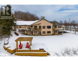 Welcome to your private four-season retreat, a breathtaking 9.35-acre executive estate originally designed as a charming bed and breakfast. Whether you seek a spacious single-family home, or the opportunity to operate a home-based business, this property offers many possibilities. With over 4,100 sq. ft. of living space, this stunning residence features 5 bedrooms and 5 bathrooms, including 4 ensuites for ultimate comfort and privacy. The walkout basement with a separate entrance enhances the flexibility of the home. Inside, soaring cathedral ceilings, three cozy fireplaces, and a country kitchen with a wet pantry create a warm and inviting atmosphere. High-speed fiber-optic internet ensures seamless connectivity for business or leisure. State-of-the-art dual geothermal systems provide exceptional energy efficiency year-round. Step outside to experience 2,500 sq. ft. of decking and patio space, ideal for entertaining or relaxing while soaking in the breathtaking views of Devils Glen Ski Hills and the adjacent provincial park. A picturesque 0.75-acre pond, complete with a pond-fed sprinkler system, enhances the natural beauty of the landscape. Nature lovers will appreciate direct access to the Bruce Trail, while skiing, golfing, and outdoor adventures await just minutes away. Conveniently located only 90 minutes from Toronto, 40 minutes from Barrie, and 20 minutes from Blue Mountain Village, this is the perfect escape from city life. Come and live your best life in this extraordinary estate! (id:50886)