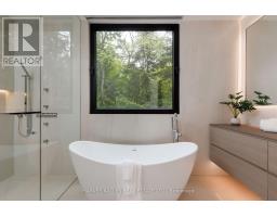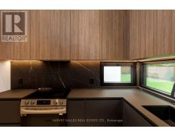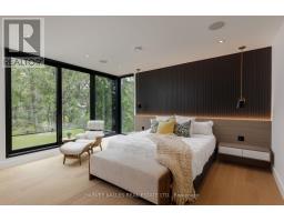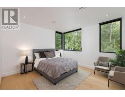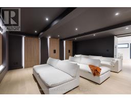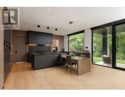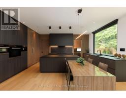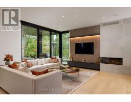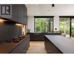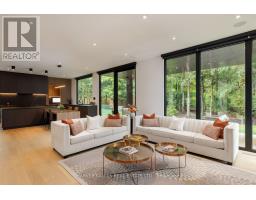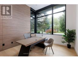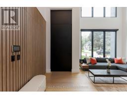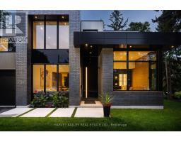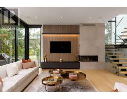 Exceptional custom residence with a masterful fusion of contemporary design with serene zen influences. 6600+ sq. ft. of finished living space, carefully crafted over four years. Dramatic 20-foot foyer with its illuminated glass pivot door, with expansive light-filled spaces highlighted by a floating staircase, architectural feature panel walls, and warm custom millwork. On the main level, a modern family room with a striking two-sided linear fireplace provides both comfort and sophistication, while the bespoke executive office offers custom millwork and gorgeous treetop views. The chefs kitchen is a true showpiece, featuring Miele appliances, a PITT gas counter range, and a separate catering kitchen. A stylish powder room, skylights, heated floors, and refined cabinetry complete the main level.The primary suite is your private retreat with a spa-inspired ensuite, custom walnut and glass walk-in closets, and a cozy lounge complete with 3-sided fireplace ambiance. Additional bedrooms feature en-suite baths and built-in cabinetry, with a flexible fourth bedroom suite that provides versatility. Your laundry room with full custom millwork completes the upper level. The lower level is an entertainment and wellness oasis ... 15-seat soundproof theatre, glass-walled temperature-controlled wine cantina, open-concept gym, and a sleek wet bar create the ultimate space for relaxation and hosting. A nanny or guest suite with a spa-like ensuite and direct walkout to the landscaped grounds ensures comfort and privacy for extended stays. The exterior showcases modern brick and aluminum cladding, beautifully landscaped grounds with irrigation, and sleek architectural lighting. Technology is seamlessly integrated with a Control4 smart home automation system, delivering comfort, convenience, and efficiency at your fingertips.This is more than a home it is a contemporary zen oasis, where design, technology, and tranquility converge to create a sanctuary for modern living. (id:50886)