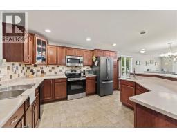 This fabulous oversized Raised Ranch with 1700 sq ft on 68 ft wide lot backing onto green space with plenty of wildlife and no rear neighbours. 3+1 bedrooms, 3 full baths including primary with luxurious ensuite jacuzzi bath and walk in closet, open concept thru out, kitchen with breakfast bar/island and bar sink, gorgeous cherrywood cabinets, gleaming hardwood and ceramics thru out main floor. Lower level fully finished with spacious family room, games room and 4th bedroom, grade entrance with huge covered patio underneath a covered deck and privacy fenced yard and 2.5 car garage. Updates incl. roof (2014) furnace & A/C and owned hot water tank (2021). Walking trails and playground near by and close to all amenities and move in condition. (id:50886)