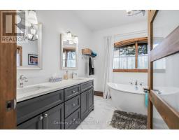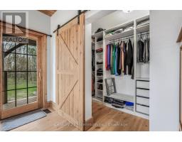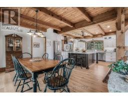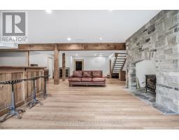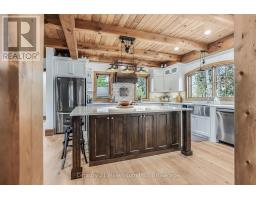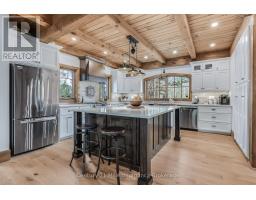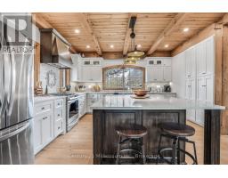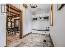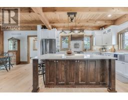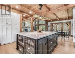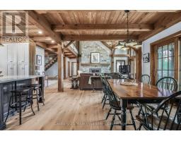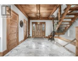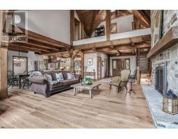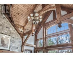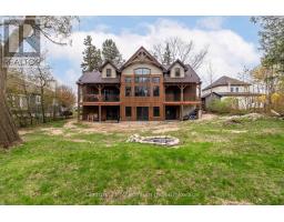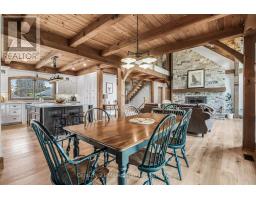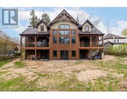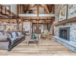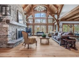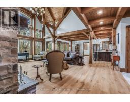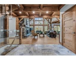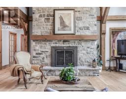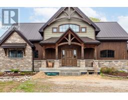 A Rare Riverfront Retreat in Southampton. Welcome to a one-of-a-kind timber frame masterpiece nestled on the banks of the Saugeen River, just steps from the shores of Lake Huron. This extraordinary home blends artisan craftsmanship with refined luxury in one of Ontario's most coveted locations. From the moment you step into the grand foyer, you're greeted by a stunning interplay of natural elements rich timber beams, elegant tile, and soaring glass. The dramatic living room is the heart of the home, where cathedral ceilings and exposed hammerbeam trusses frame a floor-to-ceiling stone fireplace. Sunlight floods the space through expansive windows, creating a warm and inviting ambiance. The chefs kitchen is an entertainers dream, with a generous central island that seats five, gleaming quartz countertops, and exquisite cabinetry with custom pot drawers and glazed uppers. Host elegant dinners in the dining room, or step onto the raised balcony to dine alfresco with views of your private, treed backyard. The main floor primary suite is a tranquil escape featuring its own secluded balcony, a lavish 5-piece spa-inspired ensuite with freestanding soaker tub, glass walk-in shower, double vanity, and a generous walk-in closet. Upstairs, a glass-railed loft overlooks the living room, flanked by two private bedrooms and a luxurious central bath. The fully finished lower level offers even more indulgence: a radiant-heated family room with stone hearth wood stove, wet bar, walk-out patio access, a spacious bedroom, full bath, exercise room, and a wine-lovers dream cold room. Just steps from Pioneer Park, the riverfront harbour, and Southampton's charming downtown, this home offers an unparalleled lifestyle of beauty, privacy, and prestige. (id:50886)