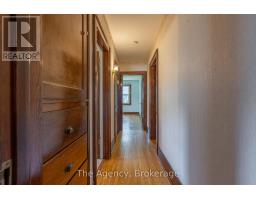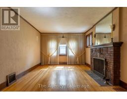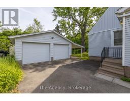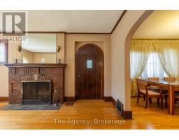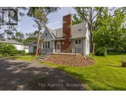 Charming Character Home on Expansive Park-Like Lot! Welcome to this beautifully maintained 3-bedroom, 2-bathroom character home, ideally situated on a generous 101.5-foot-wide lot featuring a circular driveway and an oversized double garage, perfect for a home-based tradesperson or car enthusiast. Step inside to find pristine hardwood floors flowing throughout the home, enhancing its timeless charm. The inviting living room boasts a cozy wood-burning fireplace, stained glass windows, and a distinctive rounded wood door creating a warm and welcoming atmosphere. The formal dining room is ideal for hosting family gatherings or entertaining guests. On the main floor, two well-appointed bedrooms feature classic wood trim and vintage crystal door handles, while the updated 4-piece bathroom adds modern comfort to this classic home. Upstairs, a spacious third bedroom offers a walk-in closet and beautiful hardwood flooring, accompanied by an expansive bonus space ideal for a great room, office, or additional living area.The unfinished basement provides abundant storage, a laundry area with a sink and toilet, and a substantial bonus room awaiting your personal touch. Outdoors, the expansive lot provides ample parking and a serene setting. The detached double garage is equipped with its own breaker panel, a gas line for heating, and a covered patioan ideal workspace or retreat. A separate generator panel offers added peace of mind during power outages. Notable Updates: House Roof (2016) | Garage Roof (2021) | Electrical Updates (2010) | Furnace (2008) | Central A/C (2020) | Hot Water on Demand System (2008). This exceptional property blends classic charm with modern upgrades and practical features! Dont miss your opportunity to make it yours. Bonus: Adjacent severed lot (33 x 121) also available for sale. Keep it as part of your park-like property or sell separately. Offered at $140,000. (id:50886)