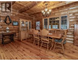 Welcome to your new home! This is the true definition of rare: custom built, Scandinavian Scribe (logs arestacked, fixed together precisely w/hand-cut grooves & fitted together without mortar) wood throughout theentire home. Open the front door & you will see the pride in ownership that this home provides throughout.An amazing, open-concept main floor features beautiful flow as the kitchen sits right in the middle ofeverything allowing your family's best chef the ability to prepare nightly dinners while still keeping an eye onkids young & old. Your living room allows for a wonderful area to sit in the evening enjoying a glass of yourfavourite beverage, or take a step outside to your incredibly large deck to enjoy the nightly sounds that 23.8acres provides. Also on the main floor is a separate family room, currently used as an office, but can be usedfor any number of possibilities. Head upstairs for 4 full bedrooms & 2 full baths, offering enough room foreven the largest families. Finishing off this amazing home is a gorgeous sun room featuring spectacularsunset views all year round. I almost forgot, there is a fully heated workshop just on the other side of yourcircular driveway, which will allow your best handyman/woman space for all their hobbies! The location ofthis home is impeccable as you are right on Highway 118, which is one of the first roads plowed in the winter.As well, you are a 11min drive Bracebridge & 14min to Gravenhurst. Take a look today! (id:50886)