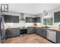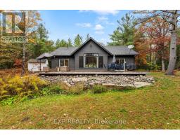 Discover peaceful country living on nearly 10 private acres with this bright, thoughtfully designed 3-bedroom bungalow. With over 1,600 sq. ft. of living space and in-floor heating throughout, this home offers comfort and style year-round, whether as a full-time residence or weekend retreat. The spacious living room boasts a soaring cathedral ceiling and a cozy woodstove, creating a warm, inviting space to relax. The open-concept kitchen flows seamlessly to a massive deck, perfect for BBQs, morning coffee, or simply enjoying the serene surroundings. Retreat to the primary suite featuring a private walkout, walk-in closet, and a stylish 3-piece ensuite with a custom-tiled shower. Step outside to a covered front porch, a cleared yard with firepit, and a large storage shed - ideal for outdoor gear, tools, or hobbies. With ample parking, total privacy, and a prime location just minutes to Hwy 11, Bracebridge, and Gravenhurst, this property blends tranquility with convenience. Experience the Muskoka lifestyle you've been dreaming of - where every day feels like a getaway. (id:50886)