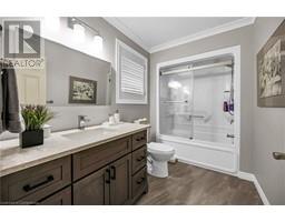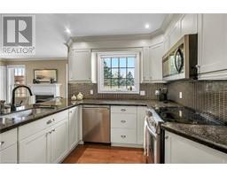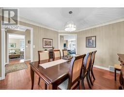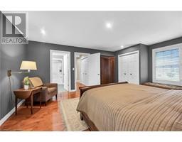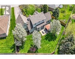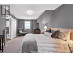 Experience lavish executive-style life-style in this prestigious Simcoe neighborhood enjoying close proximity to this popular Norfolk town's desired amenities incs Hospital, schools, churches, rec centers/pools, parks, Lynn walking/biking trail, shopping malls & downtown shops/eateries. Positioned majestically on 0.28 ac premium pie-shaped lot is 2000 custom Kloet built, original owner, brick/stone bungaloft introducing 2437sf of flawless living area, 1456sf finished basement, 707sf attached garage incs side door walk-out to velvet green lawn rear yard highlighted w/410sf concrete entertainment patio enhanced w/wood gazebo & privacy fence. Welcoming covered front porch provides entry to grand foyer leading past formal dining room & comfortable living room - continuing to updated kitchen-2021 sporting stylish white cabinetry, granite countertops, tile backsplash, designer peninsula & SS appliances -segues to adjacent family room boasting warm gas fireplace & rear yard patio walk-out. Roomy corridor leads past neatly hidden laundry station to impressive primary bedroom incs chicly renovated 4pc en-suite - completed w/3pc bath & direct garage entry. Gleaming hardwood floors & crown moulded ceilings compliment pristine interior w/distinguished flair. Solid wood staircase ascends to bright 2 bedroom & 3pc bath upper level ftrs classic dormers allowing natural light - plus- 2nd staircase accessing separate finished loft - ideal kids/teenage hang-out. Tastefully appointed lower level covers all the perks - from rec room, games room, fully equipped workshop, multiple storage rooms, utility rooms to spacious guest bedroom, modern 3pc bath & convenient garage staircase walk-up. Extras - roof shingles-2017, n/g furnace, AC, HRV, shared well (agreement in place) supplying full zoned irrigation-2023, brushed nickel door hardware, newer eaves w/gutter guards, oversized double driveway, California shutters & 2 insulated garage doors-2023. Taking “Immaculate” to the Next Level! (id:50886)