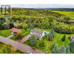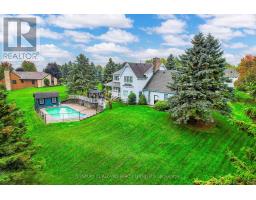 Are you looking for an executive home that offers quality with loads of space on 3 floors? Beautiful kitchen with granite counters with stainless steel appliances with adjoins walkout to backyard with Inground saltwater heated pool. Enjoy sitting on a covered front porch 8x42. This home has a grand entrance with spiral staircase. Other main floor features include laundry area, sunken family room with stone fireplace, separate living room and dining room with an extra space for home office. Quality flooring. Second level has a huge primary suite 14.4x19.2 with a walk through with closets leading to a 5 pc ensuite. 2 more bedrooms, laundry shoot, and 4 pc bath complete the upstairs. Lower level basement has a rec room, 2pc bath, games room, cold room, furnace room, and walk up to garage. Bonus out building has a 2 pc bath, change room area and storage for all the pool equipment. Driveway is oversized with the ability to hold 9 vehicles . Located Amongst many quality built homes. Views of the country side! Can also offer a quick closing! (id:50886)