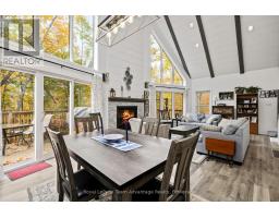 Step into serenity with this wonderful 4-year-old custom-built home nestled in one of Otter Lake's most coveted waterfront communities. Designed for year-round enjoyment this property offers the perfect blend of luxury, comfort and nature. This home has soaring cathedral ceilings and a dramatic floor-to-ceiling fireplace that anchors the open-concept main floor. The kitchen is adorned with gleaming granite countertops and stainless steel appliances. Step out through the dining room's walkout to a private deck that connects to a beautifully crafted gazebo perfect for morning coffee or sunset cocktails! The main level also features a spacious primary bedroom with a 4-piece ensuite w/in floor heating and a walk-in closet. Two additional bedrooms offer ample space for family and guests while three bathrooms ensure comfort and convenience for all. The lower level is a haven for relaxation and entertainment, complete with a stylish wet bar and walkout access to the side yard. This exclusive community offers deeded access to a private sandy beach and your own designated boat slip which is included in the modest $375 annual association fee. Carters Landing has approx. 600' of shoreline on Otter Lake, enjoyed by this private community. The fee also covers insurance for all common areas ensuring peace of mind and a well-maintained environment. Otter Lake is spring-fed and renowned for its crystal-clear waters and miles of scenic boating. There is a nearby resort for a gourmet lakeside meal, every day here feels like a vacation. Located only 12 minutes to Parry Sounds shops, restaurants and hospital and only 2 hours from Toronto perfect for weekend escapes or full-time living! This home is more than a place to live, its a lifestyle. Whether you're seeking a peaceful retreat, a family-friendly haven or a luxurious base for lakeside adventures this property delivers it all. (id:50886)