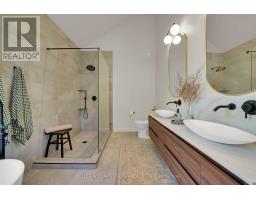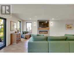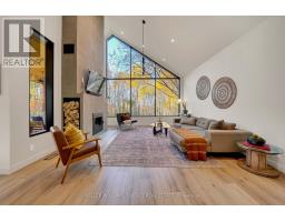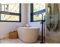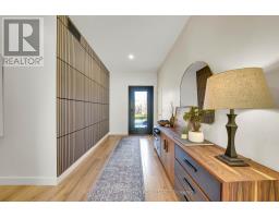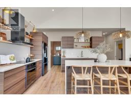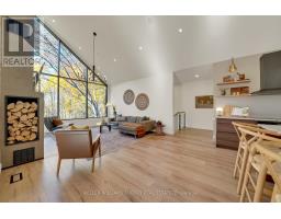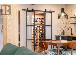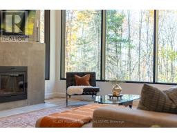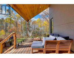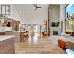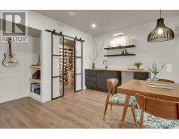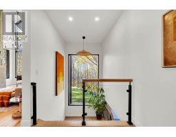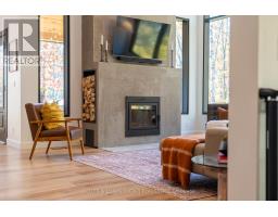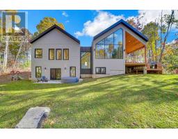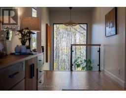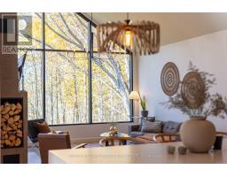 Experience refined modern living in this stunning custom home in the serene countryside of Stirling, Ontario. With over 2,000 sq. ft. on the main floor and a walk-out lower level, every detail reflects thoughtful design. The exterior makes an immediate statement with a seamless blend of grey stucco featuring granite flecks, black steel siding, and a sleek steel roof that flows into the sides for a bold, contemporary profile. Armor stone retaining walls enhance the landscape and create additional level areas, while hard-wired exterior cameras provide security. Inside, 17-foot vaulted ceilings and a commercial-grade curtain window wall flood the open-concept living, dining, and kitchen areas with natural light. A zero-clearance wood-burning fireplace, finished in skimmed concrete and framed by expansive windows, anchors the space. Enjoy wooded views from the principal rooms. The kitchen combines beauty and function with quartz countertops and backsplash, a waterfall island, 33-inch black granite Kohler under-mount sink, induction cooktop, and a well-organized pantry. The dining area opens to a partly covered, multi-level deck with glass rails for unobstructed views. Off the kitchen, a short hallway leads to a 2-pc bath, storage room, and a mudroom with built-ins and laundry. The main floor includes three bedrooms and two full baths. The primary suite features a vaulted ceiling, walk-through closet, and spa-like ensuite with walk-in shower, tub, and dual vanity. A custom white oak staircase leads to a partially finished walk-out basement with 9-foot ceilings-offering potential for a fourth bedroom, full bath, or gym. Completed space on this level includes an office, den, wet bar, wine room, and a recreation area with an electric fireplace wrapped in skimmed concrete. With over 4,000 sq. ft. of living space, integrated speakers, and striking architectural detail, this home is a true statement of modern design excellence in the heart of Stirling. (id:50886)