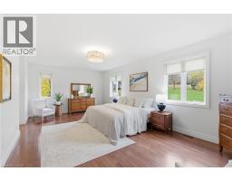 Welcome to over 7,000 total square feet in one of the area’s most sought-after estate neighbourhoods — just minutes from Spencer Gorge Conservation Area. This home doesn’t just check boxes, it rewrites the list. Step inside to a spacious foyer with a walk-in closet that sets the tone for the expansive rooms and views to come. The main floor is an entertainer’s dream with a huge living room, elegant dining room with coffered ceiling, sunroom with walk-out to the patio, and a family room anchored by a cozy gas fireplace. The large kitchen steals the show with generous backyard views and room to create any meal you can imagine. Finished entertaining? Retreat to the primary suite the size of some condos — complete with his-and-her walk-in closets and not one, but two spa-worthy ensuites with heated floors. Another main floor bedroom also has its own ensuite, perfect for guests or extended family. Upstairs adds two large bedrooms, a bonus room, a solar-tube lit four-piece bathroom, and even a walk-in attic for storage. A commercial-grade washer/dryer has your back when laundry day comes. Car lover? The three-car garage with exposed aggregate driveway includes a heated workshop and wheelchair lift for accessibility. Outside, enjoy 1.4 acres of privacy and garden views. The basement with over 3,000 square feet is ready for your theatre, gym, or wine cellar. Efficient geothermal heating/cooling, two water heaters, reverse osmosis, and 400-amp service make you future-ready. Don’t be TOO LATE*! *REG TM. RSA. (id:50886)