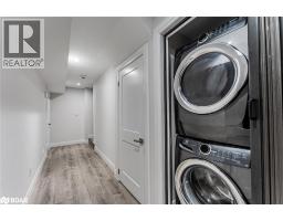 WELL-MAINTAINED BACHELOR SUITE WITH CONTEMPORARY FINISHES! Discover this all-inclusive, bright, and well-maintained lower-level bachelor-style suite with stylish finishes throughout. The sleek kitchen features stainless steel appliances, including a fridge, stove, microwave, and toaster, paired with timeless white shaker cabinetry, a tile backsplash, and a dual sink. A contemporary 3-piece bathroom features a glass shower and bold black fixtures, while an in-suite laundry area with a stacked washer and dryer, along with an extra closet, provides everyday convenience. Easy-care flooring and recessed lighting complete the space, with one parking spot, and all utilities covered except for the internet. Secure this well-maintained #HomeToStay and enjoy modern living made easy. (id:50886)
