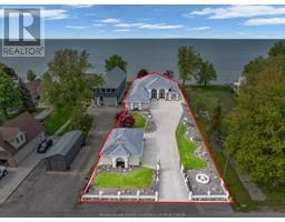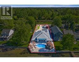 Absolutely stunning lakefront ranch offering unparalleled waterfront living. This approx 3600 sq foot property with soaring 30 foot ceilings was designed with attention to detail and quality craftsmanship throughout. Nestled on a sprawling plot of land (80x295feet) with a full breakwall, this home has a breathtaking view of Lake St.Clair. The home boasts an open concept design with large windows that flood the interior with natural light showcasing the picturesque scenery. You walk into the home into the spacious foyer, large gourmet kitchen with an island and a spacious living area ideal for entertaining with a 30 foot oak bar which seats 9 is equipped with ice maker, wine cooler, keg taps and bar fridges. This home has 3 bedrooms 3 full bathrooms. Open the beautiful custom etched glass doors into the master bedroom. The master bath has a soaker tub, rain shower and oversized walk in closet. The home also features an indoor sauna perfect for relaxation and wellness! In floor heating throughout the home. Walk outside to your backyard oasis featuring a 32 foot sports pool with attached spa tub and waterfall. The outdoor pool house is equipped with a bathroom and outdoor shower. The attached 3 car garage is complete with car wash/ drainage and in floor heating. This property also has a three car detached garage with workshop and built in air compressor. Both garages have epoxy flooring. This executive lakefront home has a 100% stone facade, 200 ft driveway and a rubber roof. This lakefront ranch is not just a home it's a serene escape where you can enjoy the tranquility of nature while being a short drive to amenities. Perfect for families or anyone seeking a peaceful lifestyle, this property truly embodies the essence of lakefront living. (id:50886)