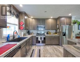 Welcome to Twin Springs Cottage Condo Community!This beautiful move-in ready modular bungalow, built in 2021, is perfect for year-round living or as a turnkey Airbnb investment and is ready for immediate occupancy! Offering 1,267 sq ft of thoughtfully designed space, this home blends comfort, convenience, and lifestyle.Inside, you'll love the bright, open-concept layout filled with natural light from large windows. The spacious living room flows seamlessly into the eat-in kitchen, featuring stylish cabinetry with crown moulding, ample cupboard and counter space, and a centre island with seatingideal for casual meals or entertaining. Just off the dining area, step onto the covered verandah, the perfect spot for morning coffee or evening relaxation.The home includes two generous bedrooms, both with walk-in closets. The primary suite boasts a private 3-piece ensuite, while a second 4-piece bath serves guests and family. A dedicated laundry room, LED and pot lighting throughout, and thoughtful upgrades add to the functionality and appeal.Outdoors, enjoy a fenced yard ideal for pets, a fire pit area, and a wraparound deck with a propane hookup for your BBQ or fire table perfect for summer gatherings.The community offers a lifestyle to match, with amenities including a lake with a beach, fishing, volleyball, horseshoes, a community centre, playground, ping pong, and more. All of this in a peaceful country setting, just a short drive to Woodstock, Brantford, Paris, and major highways for easy commuting.Whether youre looking to downsize, invest, or enjoy a simplified lifestyle, this home has it all. Park fees: $613.16/month. Don't miss this opportunity! (id:50886)