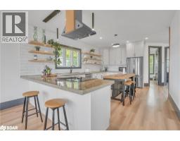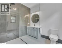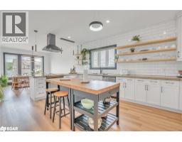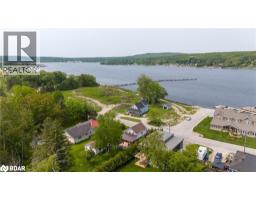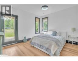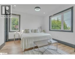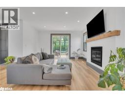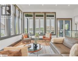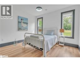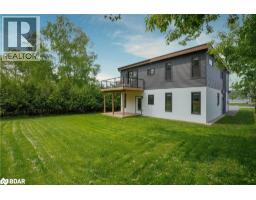 Modern Luxury with Scenic Harbour Views. Just Steps from the Beach. Experience refined coastal living in this exceptional 2,400 sq. ft. modern residence, ideally located just a 3-minute stroll from the beach and showcasing captivating southwest views of Penetang Harbour. Thoughtfully designed with 4 spacious bedrooms ( 3 on the main floor and 1 on the second floor, now being used as a gym, but could be home office or flex space )and 2.5 elegant bathrooms, this home features an airy open-concept layout highlighted by soaring 12-foot ceilings in the great room, 9-foot ceilings throughout, and premium finishes at every turn. The heart of the home a gourmet kitchen with stainless steel appliances flows seamlessly into the dining and living areas, complete with a cozy fireplace and walkout to a covered balcony perfect for sunset views. Retreat to the serene primary suite featuring a spa-inspired ensuite with a walk-in glass shower. Additional features include radiant in-floor heating on the ground level, modern lighting with designer Kusco fixtures, $10,000 in custom window coverings, 8-foot doors, and custom baseboards throughout. Practicality meets style with inside access to a single-car garage, a well-appointed mudroom/laundry space, and multiple outdoor living areas including three decks and a generous backyard. This is coastal elegance at its finest where every detail has been carefully curated for modern comfort and relaxed sophistication. (id:50886)
