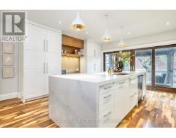 Larger than it looks - an impressive 29 ft wide! This beautifully renovated 2-storey semi in sought-after Little Portugal blends modern style with original charm. Gutted to the studs and professionally extended at both the rear and upper levels, this home was completely rebuilt in 2016 with new furnace, plumbing, windows, air conditioning, and roof. The bright open-concept living and dining area retains its character with leaded-glass windows while offering a contemporary, airy layout. The stunning chef's kitchen features a large quartz island, sleek cabinetry, and wall-to-wall patio doors that open to a private backyard-ideal for entertaining. Upstairs offers three spacious bedrooms and a fully renovated 4-piece bath. The primary bedroom includes a walk-in closet with excellent potential for custom built-ins. The finished basement adds valuable living space, complete with a 4-piece bath and a generous utility/laundry room (ceiling height approx. 6'1"). Basement renovation includes interior waterproofing below grade and a backflow valve for peace of mind. Outside, enjoy a new deck with gazebo, garden shed, interlocking brick, and a new north-side fence. A rare bonus for the neighbourhood: a private driveway with parking for two cars. Stylish, spacious, and move-in ready-this exceptional home is not to be missed! (id:50886)