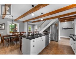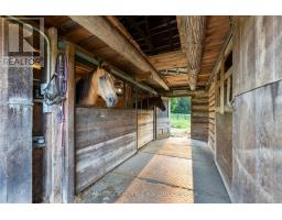 Discover the perfect blend of history, character, and modern luxury with this extraordinary countryside waterfront retreat on over 12 acres of beautifully landscaped and private land. Boasting 220 feet of frontage on the sparkling waters of Mink Lake, this one-of-a-kind 4-bedroom, 3-bathroom property is a true sanctuary, seamlessly marrying rustic charm with elegant upgrades. At the heart of the home lies the original 1800's log cabin, thoughtfully restored to preserve its soul with exposed beams, deep window sills, and timeless craftsmanship. The main floor features a spacious open-concept kitchen and dining room, complete with stainless steel appliances, gas cooktop with griddle, wall oven, island sink, and abundant storage. Large, bright windows flood the space with natural light and offer views of the serene landscape while the double doors open to the private patio. Enjoy the comfort of a main floor primary bedroom with a beautifully updated ensuite, while upstairs provides three additional bedrooms and a full bathroom, perfect for family or guests. A unique salon space adds a distinctive touch, ideal for home business, studio, or convert to main floor laundry. The addition completed in 2017 has ICF to the roof. Enjoy views of the water and landscaped yard from the double door walkout basement. Outside, the charm continues with a wrap-around covered porch - perfect for morning coffees or evening sunsets. This property is well-equipped for hobbyists, trades, or animal lovers with a detached 1-car garage with loft, an impressive 3-car detached garage with heated workshop and loft, an attached carport, chicken coop, and a 3-stall horse barn. With unmatched privacy, stunning lake views, and a rare combination of heritage and modern living, this exceptional estate is a dream come true just waiting to be experienced. 24 Hour Irrevocable on all offers. (id:50886)
