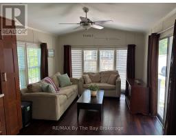 Seasonal retreat in popular Countrylife Resort. (7 months April 26th-Nov 16th). Completely renovated Baycastle Model features a 8x10 plus foot sunroom and is situated on a centrally located lot very close to the sandy shores of Georgian Bay. Parking for two cars onsite plenty of visitor parking close by. 2 bedroom 1 bathrooms. Low maintenance exterior. Landscaped yard with expansive decks and corner lot. This Cottage is ready for your family to start enjoying the summer! Resort features pools, splash pad, clubhouse, tennis court, play grounds, mini golf and short walk to the beach. Gated resort w/security. This unit has been very well maintained and is a pleasure to show! Seasonal Site fees for 2025 are $5,800 plus HST (id:50886)