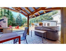 Welcome to this beautifully maintained 3-bedroom, 2.5-bath chalet located on a quiet street in one of Blue Mountains most sought-after neighbourhoods. Offering a perfect blend of rustic charm and modern convenience, this turn-key home is within walking distance to the ski lifts, Blue Mountain Village, Monterra golf course, nearby Craigleith Ski Club, and a quick bike ride or drive to beautiful Northwinds Beach on the shores of Georgian Bay! Step inside and fall in love with the soaring wood beam ceilings, wood plank floors, and Spanish tile accents that give this home its warm, mountain-lodge feel. The spacious family room with wood stove is ideal for cozy evenings, while the open-concept kitchen and dining area seamlessly connects to a covered patio featuring a wood-burning pizza oven, perfect for entertaining after a day on the slopes. The main floor also features an incredible ski tuning/boot room to store and work on all your recreational gear. Upstairs, the oversized primary suite includes a 3-piece ensuite, and two additional bedrooms share a well-appointed 4-piece bath with skylight. Also second floor hallway closet features convenient washer and dryer for easy access. There's even a separate loft hangout space above the games room ideal for teens or guests. Outside, enjoy your private backyard oasis with views of the ski hills and Niagara Escarpment, a hot tub, outdoor cedar barrel sauna with Harvia electric heater, wood fired pizza oven, fire pit, playground equipment for the kids and a large storage shed set-up as an outdoor bar making this an unbeatable spot for après-ski relaxation or summer BBQs. The garage has been smartly converted into a ski/boot room and games area, complete with a boot drying station and extra fridge. Call now and to schedule your private viewing! (id:50886)
