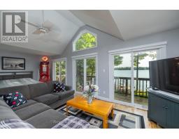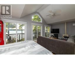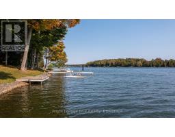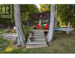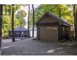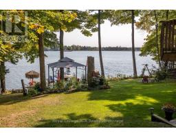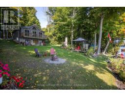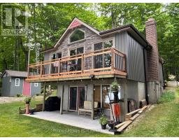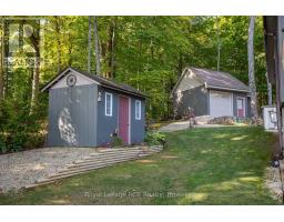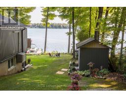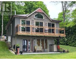 Gorgeous waterfront views at this Lake Eugenia cottage/4 season home. This 3 bedroom, 2 bathroom fully renovated bungalow features an open concept living space on the main floor with views of the lake from the kitchen/dining island as well as the living room. Along with vaulted ceilings the living room has a propane Jotul fireplace and a walk-out to a balcony where you can further enjoy the lake view. Also featured on the main floor are 2 bedrooms and a 2pc bathroom/laundry room. In the basement you will find yourself with another view of the lake from the family room which has a propane fireplace and a walk-out to a concrete patio, a third bedroom and a 3pc bathroom, as well as the mechanical room. There is a 20x24 detached 2 door garage with a 9' ceiling and metal roof, 2 storage sheds, and a deck over looking the waterside dock. The yard is beautifully landscaped and features an in-ground sprinkler system. Added bonus of shared ownership and use of 127 acres known as Macdonald Farm where there are trails for recreational use. (id:50886)