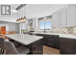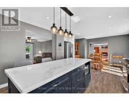 A Beautiful Bungalow & Large Workshop sitting on a Mature Lot of 1.14 Acres. This home has 2 + 1 BR & 2 WR with many upgrades. Front concrete patio leads to entrance of the home. LR with rich hardwood floors, Gas fireplace & large Bow window allowing all Natural sunlight in. The fabulous Kitchen was renovated in (2024) & features Quartz countertops, Backsplash, Double sinks, Vinyl floors, Pot lights, under Cabinet lighting and plenty of Pot drawers. Enjoy sitting at the Centre island chatting with friends while admiring the sunlight & smelling the aroma of the dishes being cooked. The family room has rich hardwood floors and a Garden Door out to the deck (2014) with a hot tub (2023) & Natural Gas BBQ. The Bedrooms are very spacious & bright with hardwood flooring which is also in hallway. The main 4 pce. Washroom was renovated in (2011) with double sinks. Lower level was renovated in (2020) and features a generous sized Rec. Room with vinyl flooring. 3rd Bedroom has vinyl flooring. Large office/playroom with broadloom & W/I closet. A convenient 2 pce W/R (2020) with separate laundry area & large utility rm/storage. Sump pump battery back up 48 hrs. The Workshop 25x48' FT (2012) and 14' FT high new shop door (2022) with cement floor, hydro (20 amp in shop), (200 amp in home). water tap and air compressor. Single car garage attached to home with plenty of parking. Roof (2016), Hardwood flrs. (2012), Water pump (2024), Furnace (2019) A/C (2020), W/S(2017), Gutter Guard (2024). (id:50886)