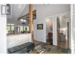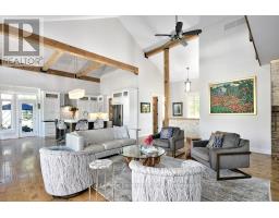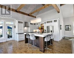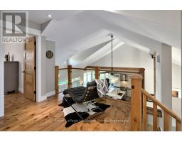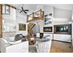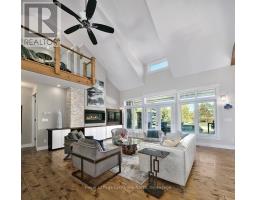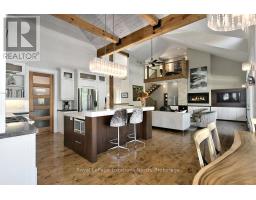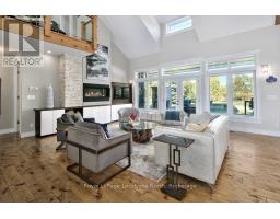 Welcome to 174 High Bluff Lane in the sought-after Trailwoods neighbourhood on the edge of Thornbury. This unique custom-built bungalow with loft blends contemporary style with rustic accents and offers over 3,600 sq. ft. of finished living space backing onto a protected ravine. From the moment you enter, you'll appreciate the craftsmanship and thoughtful details: 7" alder plank flooring, soaring vaulted ceilings, post and beam accents, shaker trim, and a grey-washed pine ceiling over the dining and kitchen. The open-concept great room impresses with custom cabinetry around a suspended linear gas fireplace, stone feature walls, and expansive windows that frame the professionally landscaped yard with slate patios and walkways, decking, gas outdoor fireplace, fire pit, and a garden shed with running water and hydro. The chefs kitchen boasts a massive waterfall island, upgraded appliances including a gas stove, custom cabinetry, under-cabinet lighting, and a walkout to the patio with a gas line for the BBQ. The main floor primary retreat features a walk-in closet and a spa-inspired ensuite with glass shower, and custom built double vanity. An office, powder room, and laundry with built-ins complete the main level. Upstairs you'll find two more bedrooms, a full bath, and a loft overlooking the living space. The fully finished lower level offers two additional bedrooms, a full 3-pce bath, storage room which could easily be used as a home gym, and a spacious family room ideal for gatherings. With the Georgian Trail across the street, Thornbury's shops, restaurants, harbour, and waterfront just a short walk or cycle away, and incredible skiing and golf just a short drive away, this property offers the perfect blend of modern luxury and four-season lifestyle. (id:50886)