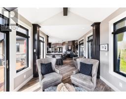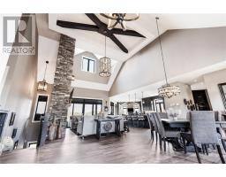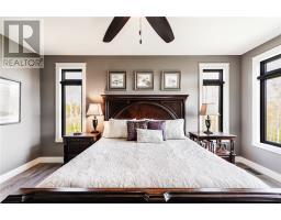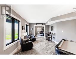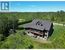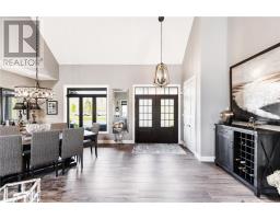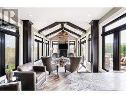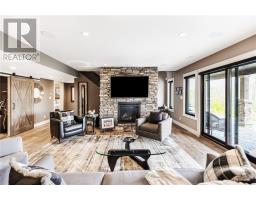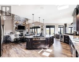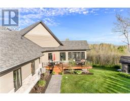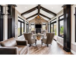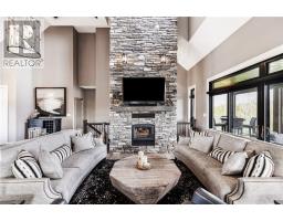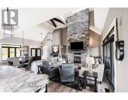 Welcome to this extraordinary custom-built home set on 5.81 acres of beautifully landscaped, nature-filled property. The grand curb appeal is undeniable, with striking stone veneer and wood siding, a fully interlocked driveway, covered porch and a three-car garage. Inside, the home seamlessly blends rustic charm with refined luxury. Soaring cathedral ceilings reach up to 23 feet and feature wood beam accents, while wood-grain ceramic tile flooring on both levels provides the look of hardwood with the ease of low-maintenance living. The heart of the home is a stunning gourmet kitchen complete with leathered granite countertops, high-end appliances and access to a covered, screened-in porch, perfect for enjoying the outdoors in any weather. The spacious mud-room includes main-floor laundry, ample storage, and a convenient exterior door. The main level offers two living room areas: a grand room centered around a floor-to-ceiling stone wood-burning fireplace, and a more intimate sitting area with a natural gas fireplace and panoramic 180-degree views of the serene backyard. The primary bedroom is a true retreat, featuring two walk-in closets, a spa-like en-suite with in-floor heating, and direct access to your private patio. The lower level offers even more space to relax and entertain, with full in-floor heating, a walkout to your back yard and hot tub, with a layout ideal for family and guests. The stone gas fireplace blends so well into this area. The lower level includes two large bedrooms joined by a Jack-and-Jill bathroom, an two-piece bath, a bright office that could serve as a fourth bedroom, and a large open space perfect for for a games area. A flexible exercise room—originally built as a theatre room—adds even more functionality to this level. The outdoor space is just as impressive, with meticulously landscaped grounds and room to add a pool. Every detail of this home has been thoughtfully designed to create a warm, luxurious, and welcoming environment. (id:50886)