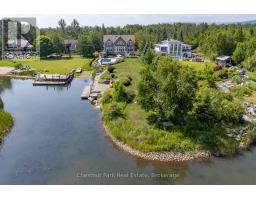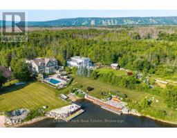 PASSAGE TO PARADISE - 105 ft of GEORGIAN BAY WATERFRONT! Situated in the vibrant prime location of Princeton Shores where beautiful sunrises/sunsets will take your breath away. Offering a generous 5,100 sq.ft. of finished luxury living space, 6 bedrooms + den & 5 baths. A spectacular heated, in-ground salt water pool has been added to the grounds for those long summer days & entertaining. Paddleboard, boat or kayak from this custom built residence to the Bay. Offering an attractive blend of luxury living & outdoor appeal with a shared boat launch, private dock & direct access to the Bay through a sheltered deep water canal. Extensive landscaping surrounds the property with flourishing gardens, landscape stones, pathways & waterside stone patio. Whether a weekend home or permanent residence, this property is 5 min. to downtown Collingwood's grocery stores, marina, markets, boutique shops and restaurants. A short drive to all area private ski clubs, Blue Mountain Village and golf courses. Upon entering, your eyes are drawn to a wall of windows with panoramic views and the iconic Nottawasaga Lighthouse. The open-plan living spaces are flooded with natural light and boast custom finishes such as reclaimed hemlock flooring and granite countertops. A grand floor-to-ceiling fieldstone gas fireplace is the great room focal point while the dining area has a walk-out to the deck, inground pool and patio area. A chefs kitchen features granite counters, tile backsplash, upgraded appliances, walk-in pantry & breakfast nook. Fall asleep to the sounds of the water in the main floor primary suite w/gas fireplace, 2 walk-in closets and luxurious 5-piece ensuite. Located on the 2nd floor is a cozy sitting nook, 3 spacious bedrooms, 2 baths and a den. The lower level comprises a large recreation room with gas fireplace, 2 additional bedrooms and a 4 piece bath. A 2 car garage with covered walkway to the house and private outdoor hot tub complete this one-of-a-kind offering. (id:50886)