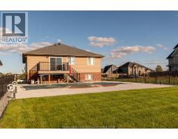 Welcome to exceptional waterfront canal living in Belle River. This custom-built raised ranch with bonus room offers 4 bedrooms, 3 full bathrooms and a fully finished lower level with grade entrance. The main floor features an open living area with gas fireplace, an updated kitchen with pantry and travertine flooring, and a large dining space that opens to a private backyard retreat with inground pool and patio. The bonus room serves as a spacious primary suite with walk-in closet, ensuite bath and second gas fireplace. The lower level includes a family room with fireplace, additional bedroom, 3-piece bath, laundry and ample storage. Exterior amenities include a double garage, double driveway, fenced yard, underground sprinklers and canal access. (id:50886)