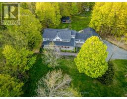 Discover timeless elegance and everyday comfort in this 4-bedroom, 3.5-bath home just steps from Dog Lakes boat launch. The main floor features a cozy gas fireplace, formal dining, home office, and a stylish powder room. A gourmet kitchen with rich cabinetry and a sunlit breakfast nook opens to a stunning interlock stone patio perfect for entertaining or unwinding. A private one-bedroom suite with its own kitchen, living space, full bath, and walkout offers flexible options for guests, rental income, or multi-generational living. Upstairs, the primary suite is a serene escape with its own fireplace, walk-in closet, and spa-like ensuite. Three additional bedrooms and a full bath complete the upper level. The finished lower level includes a family room with fireplace, rec room, laundry, and ample storage. Just 20 minutes from Kingston, this home blends space, beauty, and versatility in a peaceful lakeside setting. (id:50886)