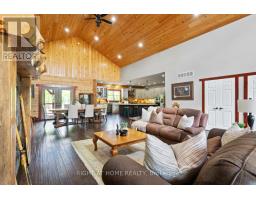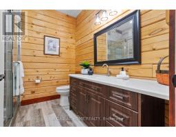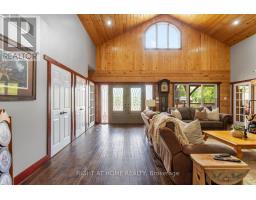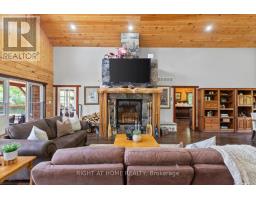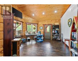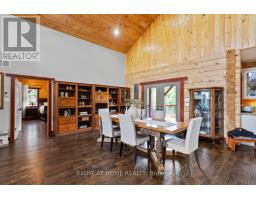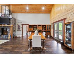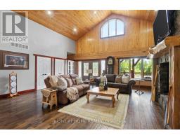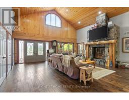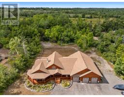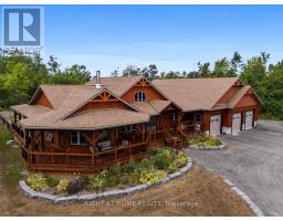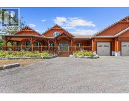 Welcome to 177 Ellwood Crescent, a unique country retreat, where craftmanship is a cornerstone of this custom built 5 year old, 3000 square foot log home sitting on 2 acres. Open the front door and you are met with vaulted wood ceilings and the perfect open plan, just calling for dinner parties and family gatherings. Relish in the custom kitchen with massive island, the ideal spot to chat while preparing meals. The dining room affords so much room space and the crowning jewel of this open space is the floor to ceiling granite fireplace where winters will never be the same. In addition to the three bedrooms, there is a light filled office, currently used as an art studio. The primary bedroom includes a dreamy walk-in closet with custom cabinetry, a four piece bath with freestanding tub and garden doors leading to the covered deck. There are so many thoughtful touches such as: hickory hardwood flooring throughout, porcelain tile floors, custom pine staircase leading to the unfinished basement that includes a rough in for a 4th bathroom, a spacious main floor laundry room, a fully fenced yard, armour rock landscaping, an incredible covered 2000 square foot wraparound deck with cedar boards, a convenient circular front driveway and if all that wasn't enough then step out of the house into the attached heated 1900 square foot triple car garage with a 4th garage door at the back so you can drive through. This property and all it offers has to be seen to be truly appreciated. The value here is immense, affording privacy but is located just outside Bobcaygeon. A log estate designed for entertaining, relaxing and living beautifully! Watch the video, book a showing and see all this property has to offer! (id:50886)