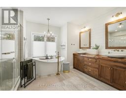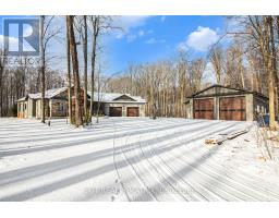 *OPEN HOUSE SUNDAY DEC 7 2-4PM* Prepare to discover the pinnacle of luxury country living in this breathtaking custom designer-built estate, perfectly poised on a premium, private treed lot just shy of four acres. Imagine waking up to mornings flooded with light, where the cathedral ceilings soar above elegant wood beam accents, setting the stage for unforgettable gatherings around the colossal 11-foot quartz island that anchors the open-concept gourmet kitchen, complete with a massive walk-in pantry and walls of fenestration framing serene outdoor views. The main floor offers a private sanctuary in the primary suite, boasting a walk-through closet, a highly upgraded ensuite with custom solid wood vanities and a large soaker tub, and direct access to a cozy, fireplace-warmed sunroom-your perfect year-round retreat. From the double attached garage, a large mudroom and main-floor laundry ensure family life stays organized, while two spacious children's bedrooms are connected by a high-end Jack and Jill washroom and a charming, flexible nook area, ideal as a reading retreat or homework station. The lower level is an entertainer's dream playground, featuring a sprawling bar area, a dedicated movie room for cinematic nights, and a generous kids' playroom beside it. Also on the lower level, a fourth bedroom, a fully equipped gym, and convenient walk-up garage access-perfectly accommodating multi-generational living. This dream is complete with an absolutely massive detached shop, featuring two large bays, a third side bay, and a loft, providing an incredible space for storing every toy and piece of equipment, cementing this home as the ultimate rural escape, truly overflowing with too many high-end, custom finishes to count. Don't miss out, book your private visit today! (id:50886)