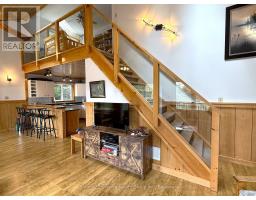 A one-of-a-kind opportunity on prestigious Redstone Lake. This 2.5-acre point property offers 550 ft of pristine southern exposure with water on three sides, combining sheltered bay living with sweeping big-lake views. Surrounded by the Canadian Shield, private trails, and mature pines, this is one of the most unique and private parcels on the lake. The meticulously maintained 3-bedroom, 2-bathroom home features cathedral pine ceilings over the family and dining rooms. The open-concept main floor is filled with natural light from south-facing windows and offers a walkout to the lakeside deck. A Muskoka room extends the living space, while the large kitchen includes a pantry, plenty of storage, and a wood-top bar with seating. The main floor hosts a spacious primary bedroom with his-and-hers closets and a large bathroom with oversized storage. Upstairs, find a loft-style bedroom, private office, and a large additional bedroom with its own balcony overlooking the lake. Updates include new windows (2016), a new electric furnace (2024), and extensive insulation for year-round comfort. The home has been lovingly cared for and is offered turnkey ready to enjoy immediately. Ideally located just 30 minutes from the village of Haliburton for shopping, dining, schools, and healthcare, and close to Haliburton Forest & Wildlife Reserve for outdoor adventure. Under 3 hours from the GTA, this property is the perfect escape while remaining accessible. Redstone Lake is known for its deep, clean waters, excellent boating, fishing, and swimming, with a vibrant community of year-round and seasonal residents. Rarely does a property of this size, privacy, and setting become available! (id:50886)