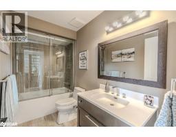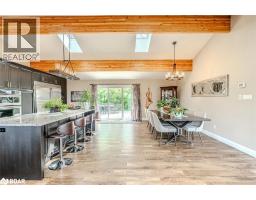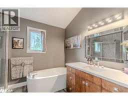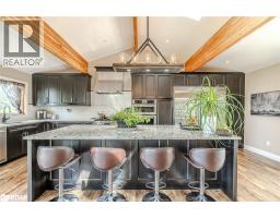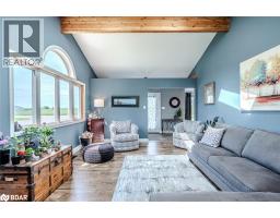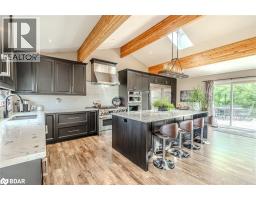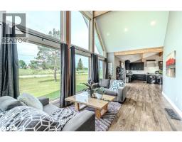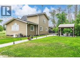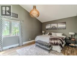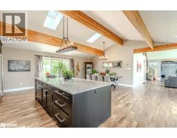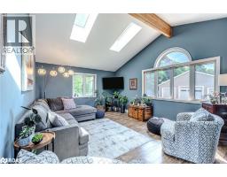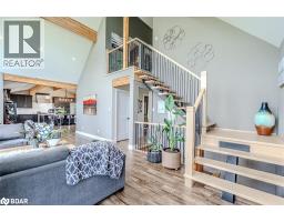 BOLD ARCHITECTURE, LUXURY UPGRADES, A HEATED 3-BAY SHOP, & SEPARATE 200 AMP SERVICE TO BOTH THE HOUSE & THE SHOP ON OVER HALF AN ACRE OF COUNTRY LIVING! Step into this 2019 Linwood home offering over 3,300 sq ft of finished living space on a beautifully landscaped half-acre lot, just minutes from downtown Elmvale. Enjoy an unmatched lifestyle close to Wasaga Beach, the Elmvale Jungle Zoo, Tiny Marsh, parks, schools, a library, an arena, and beloved community events like the Maple Syrup Festival and Fall Fair. This property is designed to impress, with a striking A-frame roofline, oversized triple-pane windows, double-door entry, manicured gardens, a stone patio, gazebo, and full landscape lighting with built-in irrigation. The heated and insulated detached shop with 3 garage doors, a commercial-grade Liftmaster opener, and dedicated 200 amp service is a dream for hobbyists and professionals alike. Inside, vaulted ceilings with exposed Douglas Fir beams, floor-to-ceiling windows, skylights, and designer LED lighting create an unforgettable interior. The modern kitchen boasts quartz counters, dark shaker cabinets, tile backsplash, an under-mount sink, island seating, and premium Jennair appliances, opening to a stylish dining space with wide patio doors, and a breathtaking living room. A skylit family room and two main floor bedrooms served by a 4-piece bath elevate everyday comfort, while a custom maple staircase with an engineered steel mono stringer leads to a loft-style primary suite with a custom walk-in closet and an ensuite with an air jet tub and imported Italian glass shower. The partially finished basement adds a rec room, bedroom, full bath, and a utility room with a tankless water heater, softener, UV system, and 4-filter water treatment. With a Generac and blown-in insulation for added efficiency, every detail is thoughtfully crafted to create an extraordinary lifestyle, and a truly rare opportunity to live and entertain in style! (id:50886)