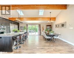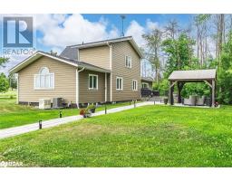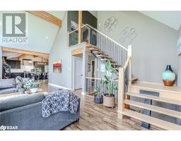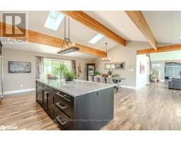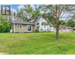BOLD ARCHITECTURE, LUXURY UPGRADES, A HEATED 3-BAY SHOP, & SEPARATE 200 AMP SERVICE TO BOTH THE HOUSE & THE SHOP ON OVER HALF AN ACRE OF COUNTRY LIVING! Step into this 2019 Linwood home offering over 3,300 sq ft of finished living space on a beautifully landscaped half-acre lot, just minutes from downtown Elmvale. Enjoy an unmatched lifestyle close to Wasaga Beach, the Elmvale Jungle Zoo, Tiny Marsh, parks, schools, a library, an arena, and beloved community events like the Maple Syrup Festival and Fall Fair. This property is designed to impress, with a striking A-frame roofline, oversized triple-pane windows, double-door entry, manicured gardens, a stone patio, gazebo, and full landscape lighting with built-in irrigation. The heated and insulated detached shop with 3 garage doors, a commercial-grade Liftmaster opener, and dedicated 200 amp service is a dream for hobbyists and professionals alike. Inside, vaulted ceilings with exposed Douglas Fir beams, floor-to-ceiling windows, skylights, and designer LED lighting create an unforgettable interior. The modern kitchen boasts quartz counters, dark shaker cabinets, tile backsplash, an under-mount sink, island seating, and premium Jennair appliances, opening to a stylish dining space with wide patio doors, and a breathtaking living room. A skylit family room and two main floor bedrooms served by a 4-piece bath elevate everyday comfort, while a custom maple staircase with an engineered steel mono stringer leads to a loft-style primary suite with a custom walk-in closet and an ensuite with an air jet tub and imported Italian glass shower. The partially finished basement adds a rec room, bedroom, full bath, and a utility room with a tankless water heater, softener, UV system, and 4-filter water treatment. With a Generac and blown-in insulation for added efficiency, every detail is thoughtfully crafted to create an extraordinary lifestyle, and a truly rare opportunity to live and entertain in style! (id:50886)