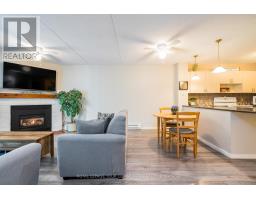 $463.60 MonthlyWelcome to Harbourside 1 in Collingwood. Bungalow style condo townhouse, main floor corner, with storage locker and walkout to patio. 2 bedroom, 2 bathroom, open concept kitchen, dining room and living room with gas fireplace, in-suite laundry, ceiling fans, ceramic and laminate floor. Tastefully decorated and well maintained. Primary bedroom with ensuite bathroom and walkout to patio. Separate main bathroom with shower and second bedroom. Laminate wood floor throughout. Tastefully decorated and well maintained. Steps to Living water resort, restaurants, walking trails and Whites Bay - natural water front beach. Minutes to Cranberry Golf, downtown Collingwood, Living Water Resort and Spa, The Blue Mountains resort, numerous golf courses, shops, restaurants and more. (id:50886)