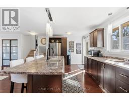 You'll find a unique mix of superb location and beautiful contemporary styling in this beautiful split-level home in West Cornwall. Located on one of the city's quietest streets and directly beside Alguire Park, one of the largest parks in Cornwall filled with mature trees, this home offers peaceful living with abundant play space at your doorstep. This home's exterior combines classic mid-century stone with a partial brick façade along with tasteful landscaping resulting in serious curb appeal. In the fenced yard you'll find a new deck, a great place to relax while keeping an eye on kids playing in the yard or in the neighboring park. Step inside the home and you'll enter a fantastic blend of modern layout and finishes - a wonderful open-concept space where the living, kitchen and dining spaces blend seamlessly. Hardwood flooring is featured throughout this area including the living space with a beautiful bay window and gas fireplace. A dining nook offers formal space for family gatherings and some additional cabinetry. The kitchen is a dream with included appliances, plenty of countertop space and a functional island great for informal meals and conversations. A french door provides direct access to the yard from the main level, ideal for pet owners and indoor-outdoor entertaining. On the upper level of this side-split home you'll find three generous bedrooms with a primary that enjoys cheater access to the full 4-piece bathroom on this floor, The lower level of this home features a large rec room with wood fireplace, a fourth bedroom, 3-piece bathroom and formal laundry room - all featuring extra tall ceilings. The basement utility room offers lots of storage potential for seasonal goods, exercise equipment or hobby space with direct walk-up access to the garage. 1796 Dewhurst is a rare find - a turn-key, updated home with a serene location and modern interior - a unique opportunity you won't want to miss (id:50886)