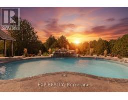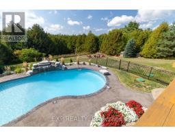 Sunset Skies. Saltwater Pool. Over 3 Acres Of Privacy Just Minutes From Uxbridge. This Exceptional Home Offers Nearly 5,000 Sq. Ft. Of Finished Living Space. The Main Floor Showcases A Beautifully Renovated Kitchen With A 9-Ft Centre Island, Quartz Countertops, Stainless Steel Appliances, Custom Backsplash, Under-Mount Lighting, And Hickory Hardwood Floors That Continue Through The Dining And Living Rooms. The Floor Plan Flows Seamlessly From The Kitchen Into The Formal Dining Room Overlooking The Yard And Into The Living Room With A Soaring 22-Ft Vaulted Ceiling And Propane Fireplace, With Multiple Walk-Outs To The Expansive Deck. Two Bedrooms On The Main Floor Share A Convenient Jack-And-Jill Bathroom. Upstairs, The Newly Renovated Primary Suite Offers A Spa-Like 5-Piece Ensuite, Walk-In Closet, And Private Balcony, While An Additional Bedroom Features Its Own Ensuite Bath. The Finished Walk-Out Basement Includes A Large Family Room With Wet Bar, Games Room, Two Additional Bedrooms, And A Full Bath, All Filled With Natural Light From Multiple Walk-Outs. Outdoors, The Backyard Is An Entertainers Dream, Featuring An Inground Saltwater Pool With Waterfall And A Custom 506 Sq Ft Cedar Cabana. The Front Yard Is Lined With Mature Hedges For Added Privacy, While A Three-Car Tandem Garage With Epoxy Floors And Propane Fireplace Provides Space For Vehicles And Toys. The Long Driveway, Complemented By A Semi-Circular Section, Offers Ample Parking And Convenience. With Wagners Lake Just Around The Corner And Town Amenities Nearby, This Home Offers Peaceful Country Living Paired With Modern Comforts. (id:50886)