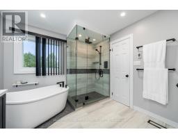 Charming Port Hope 3 bedroom, 2 bath, 2-storey home situated in a great family neighbourhood. The main floor features an updated kitchen with quartz counters and a bright eat-in dining area with walkout to the rear deck, plus a cozy living room with gas fireplace and convenient 2pc bath. Upstairs offers two secondary bedrooms and a newly renovated main bath showcasing a luxurious soaker tub, double sinks with quartz counters, custom tiled glass shower (schluter waterproofed), luminous anti fog mirror and heated floors. Semi-ensuite access to the spacious primary bedroom with walk-in closet. The finished lower level provides a great rec room space-currently set up with a pool table (included)-plus built-in bench seating, laundry and utility areas. Outside features a new deck, hot tub, above-ground pool, and usable yard space, ideal for summer entertaining. Attached one-car garage with MyQ WiFi opener adds convenience and functionality. Pathway access to Hewson Park just steps away. Updates: Metal roof (2023 on garage & over kitchen; main roof 2025), deck (2020), above-ground pool (2020), AC (2018), main bath renovation (2024), basement finishing (2018). All completed with necessary permits. Move-in ready and easy to show in this welcoming family location! (id:50886)