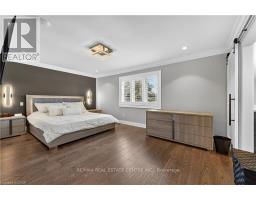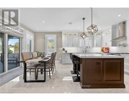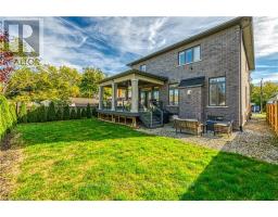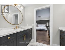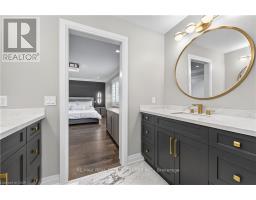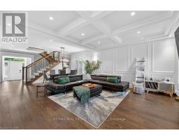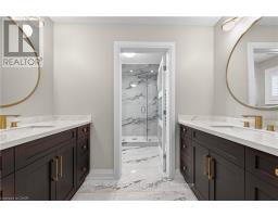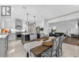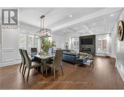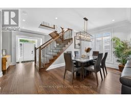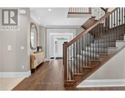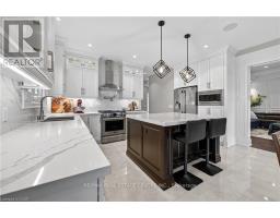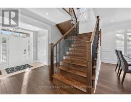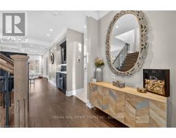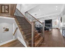 Prepare to be impressed by this meticulously crafted, fully custom 3-bedroom, 2.5-bathroom residence offering 2,531 sq ft of luxurious living on a generous 50x108 ft lot. From the moment you arrive, the home's full brick and stone façade, arched windows, and covered porch speak to the quality and pride of ownership throughout. Inside, every detail is elevated - engineered hardwood and porcelain tile span the entire home. Solid wood interior doors, coffered ceilings, pot lights (including on all 4 sides of the home's exterior), and crown moulding define each space with sophistication. The kitchen is an entertainer's dream, complete with custom cabinetry, quartz countertops, high-end appliances, in-ceiling speakers, and a spacious island. It opens effortlessly to a dining area and large living room anchored by a floor-to-ceiling stone gas fireplace and built-in wet bar. The primary suite is a sanctuary, offering a large walk-in closet with custom cabinetry and a dedicated makeup station. The ensuite bath includes a double vanity, quartz countertops, and a private water closet. Upstairs bathrooms also feature quartz surfaces and private toilet rooms for added convenience. A wide staircase enhances flow, and thoughtful extras include central vac with in-wall hose systems on every level, closet lighting throughout, and California shutters. Step outside to a covered back porch and fully fenced backyard where freshly planted cedars promise enhanced privacy in the seasons to come. The unfinished basement - with its own private side entrance and insulated subfloor - offers endless possibilities. With a double-car garage and four-car driveway, this property checks every box for luxury, comfort, and long-term livability. (id:50886)
