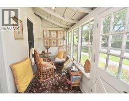 This 3 bedroom Victorian beauty embodies all of Ridgetown's classic small town charm and character. From the gingerbread gable trim outside and breezy private front porch shaded and hidden from street view by mature trees and gorgeous rose of sharon hedges, to the original interior wood trim and hardwood floors with window aprons, original bannisters and the decorative arch between living and dining rooms. High ceilings and large windows create an airy interior with light neutrals. The kitchen and both full bathrooms are delightfully done. Upstairs are two bedrooms (one being a very large primary) and a bathroom with tub/shower and on the main floor is another bedroom with cheater entry to the full main floor bathroom. What's unique here is that the main floor is set up for a separate unit (currently used as an Air BnB) with the aforementioned bedroom, bathroom and a kitchenette/den able to be self-contained with rear entrance access, great for mature family shared living or extra income. If not, the layout still works when used as a whole home. There's also an ideal sitting spot in the enclosed porch off the kitchen, an office nook, and the sweetest little loft to hide away in, above the main floor laundry room. Fenced area for dogs, kids, or separate outside Air BnB space and a detached single car garage. If you're searching for the simple life in surroundings that couldn't be more quaint, this is it! (id:50886)