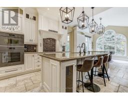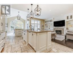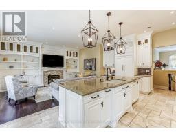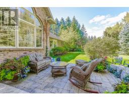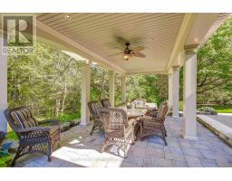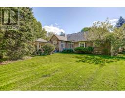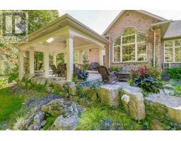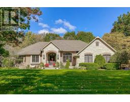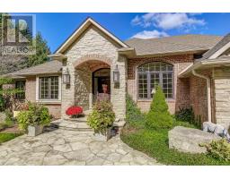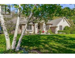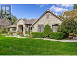 This well maintained executive 4 (3+1) bdrm custom BUNGALOW with approximately 4470sf of beautifully finished living space combines rural serenity with urban conveniences: a perfect blend of country living and luxury. It is situated on a much sought-after cul-de-sac nestled in the quaint village of Carlisle. The manicured half-acre+ lot backs and sides on to beautifully treed conservation lands. The semi-open concept main flr has been freshly painted throughout, & features an integrated living area consisting of a well-appointed and fully updated eat-in kitchen with 2 magnificent islands accommodating seating for 10 with high-end app (Miele oven/speed oven combo & dishwasher + Jen-Air fridge), and a family rm with a stone façade gas fireplace framed by complementary book shelving and cabinetry. The elegant custom cabinetry offers an abundance of storage. This level also includes an inviting living rm and an oversized dining rm accented by a beautiful coffered ceiling. The generously sized primary room retreat has a 5-pc. ensuite w/i closet. There is also a 5-pc.bath, 2 bdrms, a laundry rm and a 2-pc. bath. Enjoy the luxurious heated limestone flooring that runs throughout the main level. The professionally finished basement, accessible also from the oversized double-car garage, is completed to the same high level of craftsmanship, with high ceilings and large windows. A 27'X37'rec rm, a 4th bdrm, a 4-pc. bath, a utility rm and 4 additional rms can serve a variety of purposes. Updated light fixtures installed throughout. The extremely private back yard oasis has been beautifully landscaped to include a firepit, water feature, and multiple conversation areas well suited for large gatherings. A stunning custom outdoor rm with an integrated large Masters type hot tub complements the private park-like setting. A sprinkler system assists in maintaining the grounds and extensive perennial gardens. A professionally installed lighting system adds to the evening ambience. (id:50886)