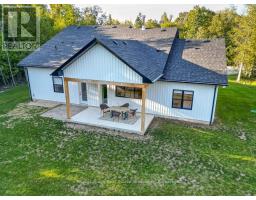 Modern custom bungalow in Oliphant! Built in 2022, this 3-bedroom, 2-bath, 3-car garage bungalow showcases modern design and quality finishes on a spacious 130' x 258' lot. The exterior features a crisp white-and-black palette with custom 8' entry doors. Inside, the open-concept layout is bright and inviting with light flooring, fresh walls, and soaring ceilings from 9' to 11. The kitchen is well appointed and ready for everyday living and entertaining, with a large island, built-in oven and microwave, countertop cooktop, and bar fridge. Comfort comes standard with in-floor radiant heat, HRV, central vac, water softener with UV filtration, and 200-amp service delivering low-maintenance peace of mind year-round. Just minutes to the beautiful shores of Lake Huron and only 15 minutes to shopping, dining, and services in Wiarton or Sauble Beach, this property offers the ideal blend of retreat and convenience. A perfect choice for a seasonal getaway or full-time living. (id:50886)