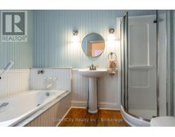 A century home with modern upgrades in the heart of Stratford. Offering over 3,000 sq. ft. of beautifully revitalized living space, this 5+1 bedroom, 6+1 bath former B&B combines timeless character with inspired modern renovations and additions. Walk in to an inviting living room with high ceilings and gas fireplace, an open-concept dining room, a cozy family room, and a private study with custom built-ins, all enhanced by blonde hardwood flooring and exquisite trim work. The chef's kitchen boasts a commercial-grade gas range, double dishwashers, quartz island with prep sink, heated tile floors, and bay windows with banquette seating overlooking the Avon River. The second level is thoughtfully divided. The private primary suite is flooded with natural light and features river views, a walkout balcony, cozy sitting area with fireplace, walk-in closet, and spa-inspired ensuite with heated floors. In the east wing, three additional bedrooms each enjoy their own ensuite baths, with two offering private balconies. A finished third-floor attic suite with private entrance and its own 4-piece bath completes the upper living space. The lower level provides abundant storage, an oversized laundry room with 2 washers/2 dryers, a sixth bedroom with ensuite, and a hidden children's playroom. Outdoors, mature landscaping, a private rear courtyard, dual driveways, and a carport add convenience and charm. All of this, just steps from the Avon River, the new Tom Patterson Theatre, world-class dining, lush parks, and Stratford's vibrant downtown shopping district. With its layout and separate suites, the property also offers the flexibility to revert back to a licensed B&B or operate as an income-generating guest space. This is more than a home--it's an opportunity to own one of Stratford's most desirable addresses. Contact your REALTOR today for details or to arrange a private showing. (id:50886)