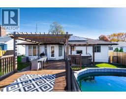 This beautifully renovated ranch-style home offers comfortable, modern living with a full finished basement and has fully paid solar panels that generate a substantial amount of income through the Microfit program! Completely updated just 3 years ago, the main floor features 3 bedrooms including a primary suite with a 3-piece ensuite, a stylish 4-piece main bath, and a stunning kitchen with quartz countertops open to the dining area. The inviting living room includes a cozy fireplace, and the convenient main floor laundry adds extra functionality. Luxury vinyl flooring and custom millwork throughout create a warm and elegant feel. The finished basement has been waterproofed and includes a sump pump with battery backup for peace of mind. Step out from the kitchen/dining area to a fully fenced backyard oasis complete with a partially in-ground pool, hot tub area, and a new wood deck and patio topped with a pergola—perfect for relaxing or entertaining! (id:50886)
