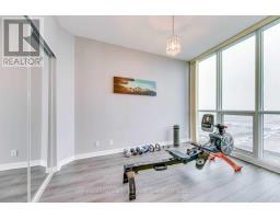 Welcome to Pinnacle Grand Park! This luxury 2-bedroom, 2-bathroom suite offers 831 sq ft + balcony with a southwest-facing, unobstructed view of the lake and sunsets. Featuring 9-ft ceilings, a functional split-bedroom layout, and sun-filled floor-to-ceiling windows, this unit combines comfort and elegance. The open-concept living and dining area boasts new laminate flooring and fresh paint, while the modern kitchen includes granite countertops and a breakfast bar. Both bedrooms feature mirrored closets.Enjoy premium amenities: 24-hr concierge, fully equipped fitness centre, indoor pool, party room, guest suite, and more. Conveniently located just steps to plazas and minutes to Square One, City Centre, restaurants, supermarkets, Sheridan College, library, YMCA, public transit, and major highways. (id:50886)