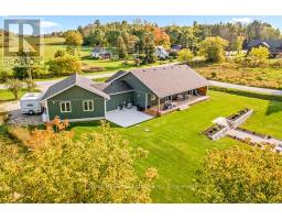 Tucked into a peaceful village setting, this custom-built bungalow is the perfect mix of quality craftsmanship, thoughtful design, and everyday comfort with just the right touch of luxury. Designed for easy one-floor living, it offers a total of 5 bedrooms, 4 bathrooms and open, airy living spaces that welcome you home. The main floor showcases an open-concept layout ideal for both entertaining and everyday comfort. A chef-inspired kitchen flows seamlessly into the expansive living and dining areas, all framed by oversized windows that flood the space with natural light. The elegant primary suite is a private retreat, featuring a walk-in closet worthy of a fashion enthusiast, a luxurious five-piece ensuite, and direct access to the covered rear deck perfect for morning coffee or unwinding in the evening. Two additional main-floor bedrooms offer generous proportions, oversized windows, and ample closet space. A thoughtfully designed mudroom/laundry complete with 2pc powder room and direct access to the heated double garage, adds to the home's exceptional functionality. Heated tile floors ensure comfort on the main level, while high ceilings and abundant windows continue into the fully finished lower level. Here, you'll find two more bedrooms, a full bath, a home office/gym, a spacious family room with kitchenette, plus dedicated utility, storage and cold storage spaces. Outdoors the spacious 0.6 acre lot boasts a poured concrete patio, covered front porch, extended back deck and lovely landscaping featuring an attractive gravel terrace with a fire pit that ensure you're ready to spend the summer entertaining or relaxing outdoors. Just a stone's throw from the Bruce Trail, the scenic beauty of Walters Falls and local farm stores. Under 20 minutes from Southern Georgian Bay attractions + shopping, schools, health care and amenities in nearby Markdale, Meaford & Owen Sound. This distinguished home offers the best of rural tranquility combined with refined modern living. (id:50886)