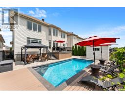Discover this stunning 4+1 bedroom home with a spectacular backyard retreat, nestled on a quiet street in sought-after Bradley Estates. Backing onto tranquil NCC greenspace and the scenic Prescott-Russell Trail, this home offers unparalleled access to nature trails and is just steps away from several parks and a splashpad. A charming front verandah welcomes you into the open-concept living and dining room, boasting elegant wainscotting. Beautiful kitchen features granite counters, stainless steel appliances, a corner pantry, and an island with breakfast bar. The inviting eating area is framed by soaring ceilings and dramatic bay windows that extend to the second level, flooding the space with natural light. Desirable main floor family room anchored by a cozy gas fireplace and custom built-in shelving. Upstairs, the spacious hallway is open to below and leads to a generous primary suite with double closets and 5-piece ensuite including a soaker tub and separate shower. The second level is complete with three additional bedrooms, a full 4-piece main bathroom and laundry for your convenience. The carefully thought-out finished basement offers an abundance of well allocated storage spaces, a large recreation room with plenty of space for a home office or gym area, plus a fifth bedroom and additional full bath ideal for hosting guests. Step outside to the sun-filled, south-facing backyard oasis, beautifully landscaped with composite deck, interlock patio, and inground pool all set against the serene backdrop of protected greenspace. Embrace a lifestyle where nature, community, and modern comfort converge this exceptional Bradley Estates home offers more than just a residence; it invites you to live your best life. (id:50886)