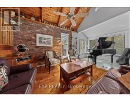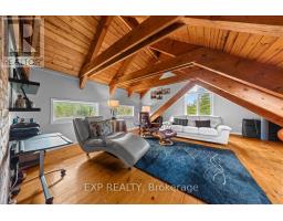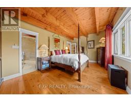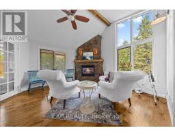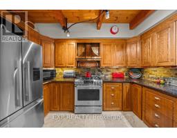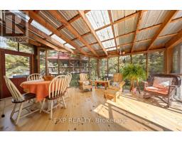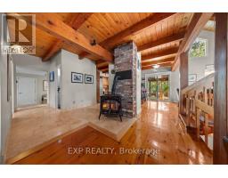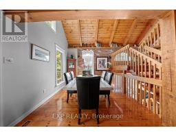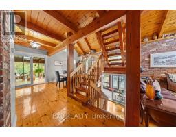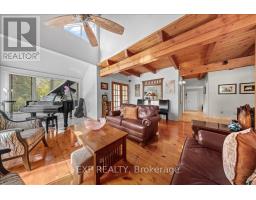 Incredible opportunity to own a one-of-a-kind custom home on 25 acres of private, wooded land with vast future potential. Designed with passive solar principles, this home features a south-facing double brick wall encapsulated by a greenhouse, maximizing energy efficiency and natural light throughout the seasons. Inside, handcrafted details shine with exposed structural BC fir beams, wide plank pine flooring, and custom oak kitchen cabinetry. The kitchen is both functional and beautiful, complete with stainless steel appliances and a custom hood fan, all thoughtfully integrated into the homes warm, natural aesthetic. The multi-level layout offers spacious principal rooms, vaulted ceilings, a screened-in porch, and flexible areas ideal for family living, working from home, or entertaining. Step outside to your private backyard oasis featuring a wood-burning sauna, scenic trails, and a custom treehouse nestled in the trees perfect for relaxation or play. A large detached shop provides excellent space for a home-based business or serious hobbyist, while the attached garage adds everyday convenience. Roofing has been thoughtfully maintained with new shingles installed in 2024, and durable metal sections designed for long-term performance. Located just 5 minutes to Farm Boy, 20 minutes to Kanata, and featuring side yard frontage on Hazeldean Road, this home offers unmatched privacy with excellent proximity to amenities and significant future development potential thanks to its visibility and access. A truly rare property that combines craftsmanship, energy efficiency, and long-term opportunity. (id:50886)